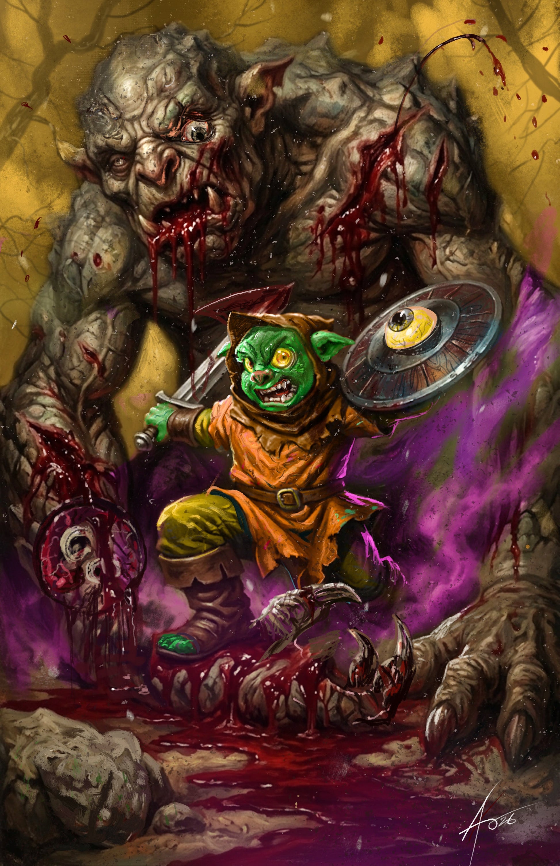 D’orc is stuck between rival goblin gangs and the giant three-headed Thrawg they hunt. It’s all spears and teeth in this one. D’orc is learning in life that you end up a shish kebab or a chew toy. Slobbering will happen, but at least one piece of D’orc will get closer to his destination.